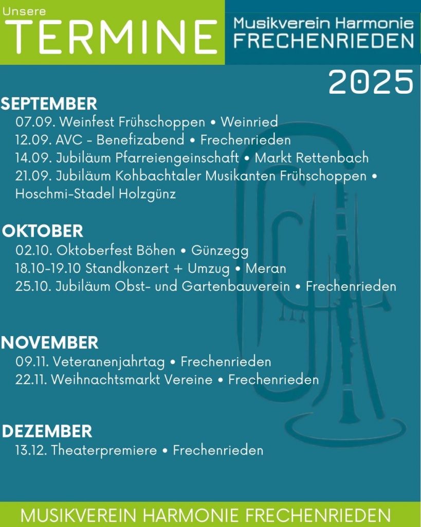 Der Musikverein Harmonie Frechenrieden zählt derzeit 61 aktive Musikerinnen und Musiker, die mit Begeisterung und Teamgeist unter der Leitung von Armin Boxler musizieren.